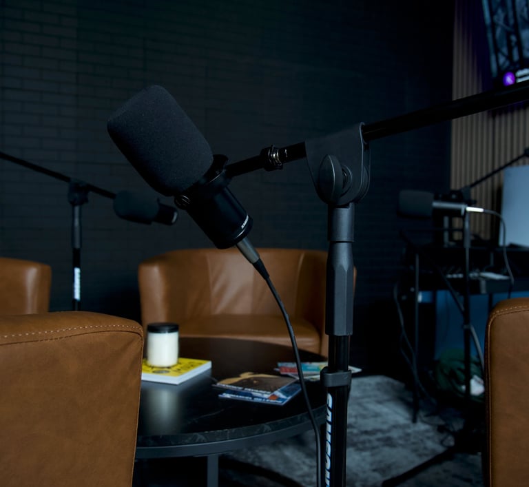 Our space is professionally sound-treated with acoustic panels for clean, clear audio in every recording. Combined with professional-grade gear and flexible production options, it’s the perfect environment for podcasts, video interviews, and content creation of all kinds.